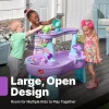 Create a whimsical adventure with the step2 rain showers & unicorns water table! This delightful water table transports kids to a magical unicorn world, where they can engage in imaginative play. Its spacious design allows multiple children to enjoy hours of fun together, exploring the interactive features that promote motor skill development. With three cute unicorn characters and a variety of colorful accessories, the water table offers endless entertainment. Kids can scoop water, pour it into the top tier for a rainfall effect, and watch as the maze below comes to life with spinners and buckets.